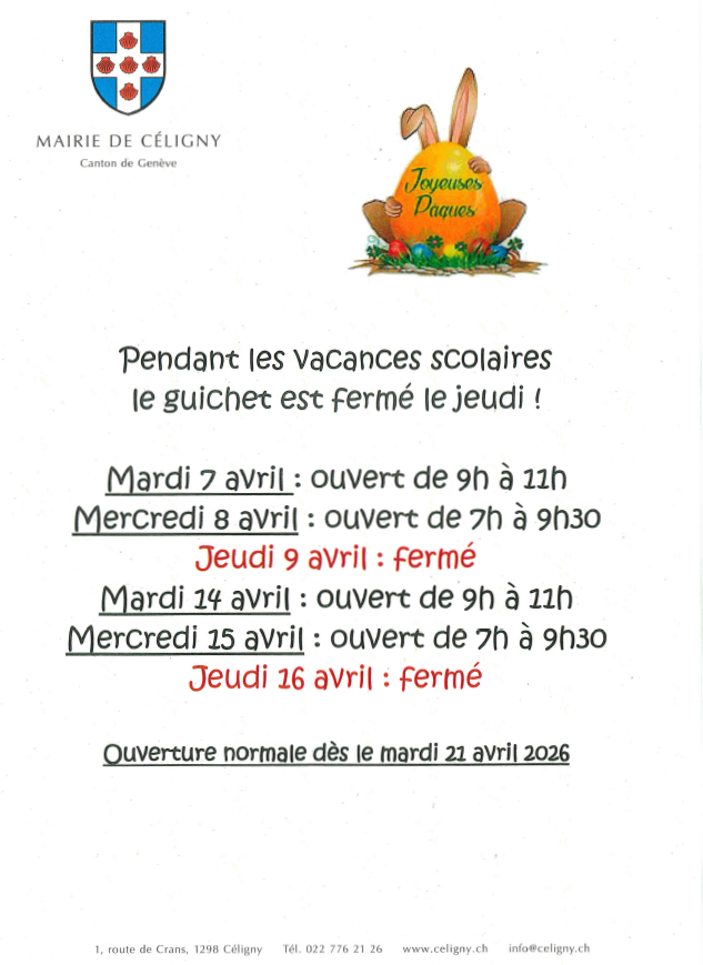 Fermeture de la Mairie à Pâques