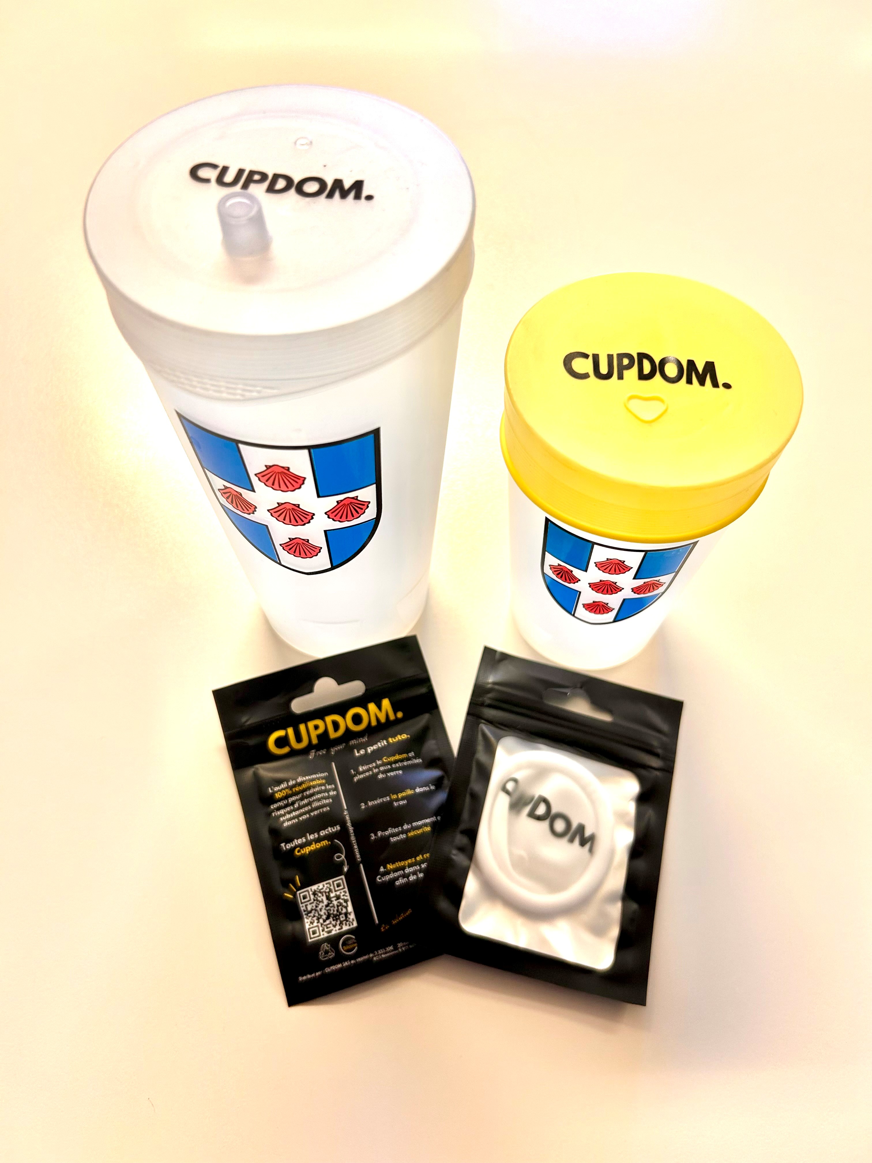 La mairie offre des capote CUPDOM de protection pour les verres.